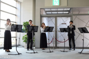 その後、開演前には木管打楽器アンサンブル「ウォルタイム・ライン/編曲:高橋宏樹」でお客様をお迎え。
