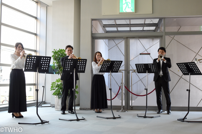 開場前にはロビーにてこちらトランペットアンサンブルにてお客様を歓迎です。